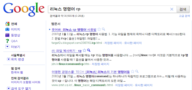 "리눅스 명령어 cp"로 계산했을 때다.문제